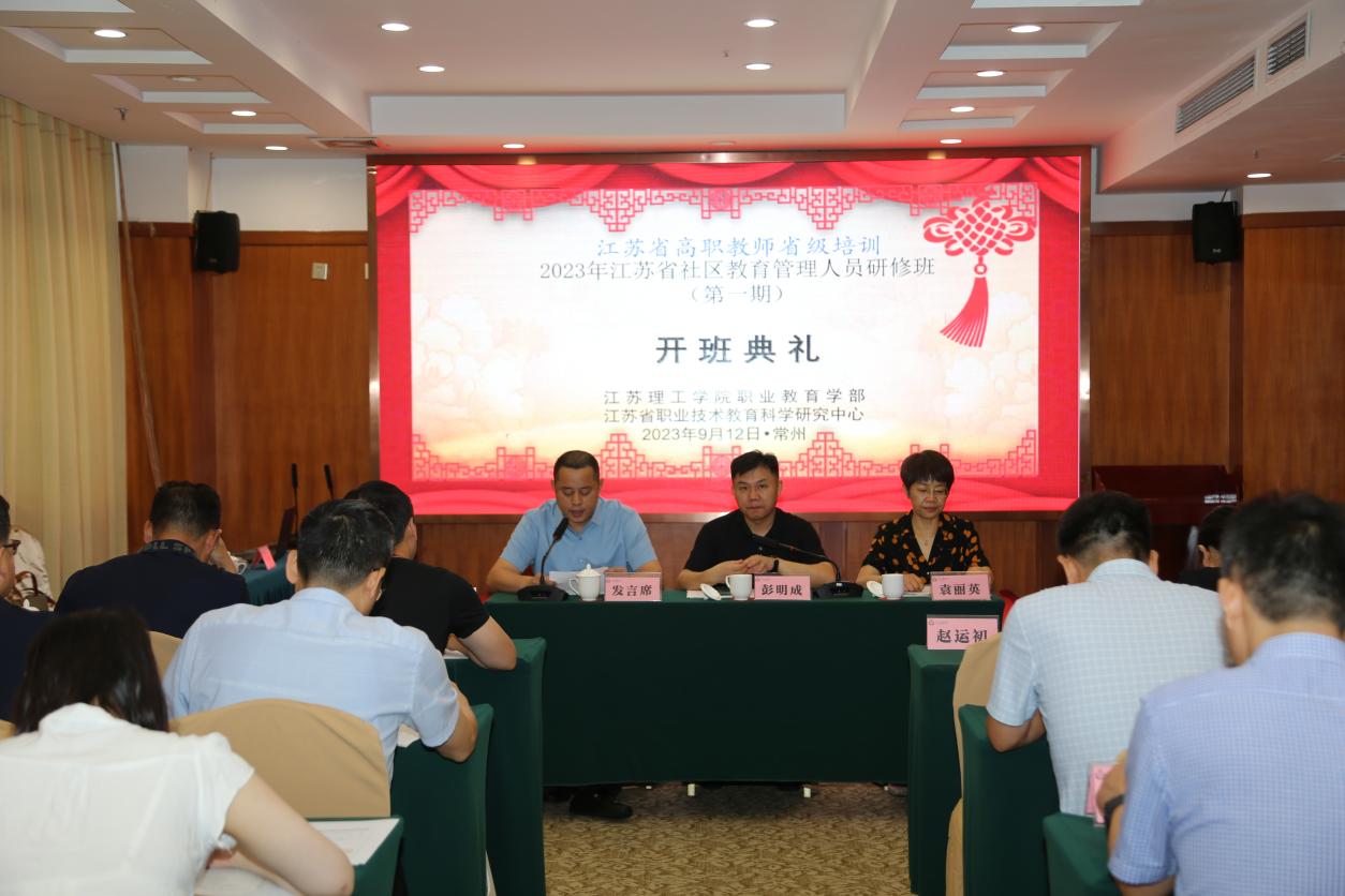 江苏省教育厅校外教育培训监管与社会教育处处长吴胜东和副处长张赟分别出席两期开班典礼并讲话,江苏理工学院职业教育学部副主任彭明成主持开班典礼。