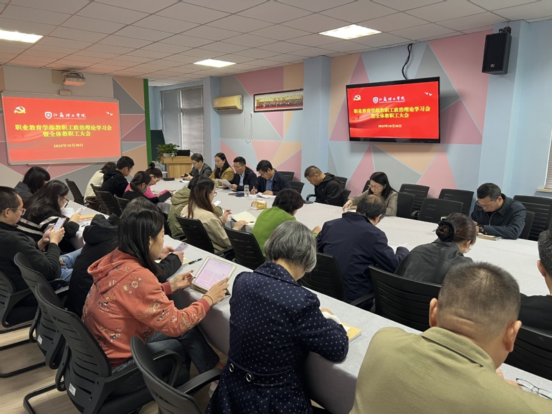 10月30日上午,职业教育学部在49号楼201会议室召开教职工政治理论专题学习会暨教职工大会,学部全体教职工参加了会议。会议由学部党委书记郭耿玉同志主持。