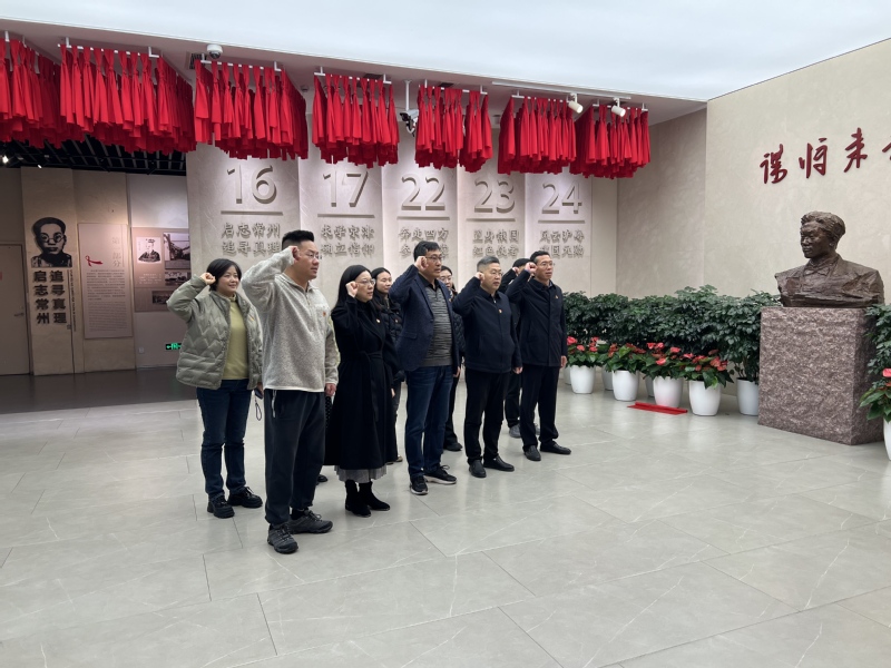 结对共建协议签署后,双方共同来到常州市张太雷纪念馆开展“缅怀革命先烈,传承红色基因”主题党日活动。在纪念馆大厅面对鲜艳的党旗,全体党员举起右拳,重温入党誓词,誓言铿锵有力,字字千钧,既是初心使命的再宣示,更是继续奋斗的再出发。在庄严肃穆的张太雷纪念馆,大家仔细观看陈列的历史文物、珍贵图片和文献资料,重温张太雷同志作为中国共产党早期重要领导人、中国共产主义青年团创始人之一的光辉事迹和革命精神。他那“愿化作震碎旧世界惊雷”的誓言、为探索中国革命道路英勇奋斗直至牺牲的壮举,让在场的每位党员同志都感受到深刻的精神洗礼。